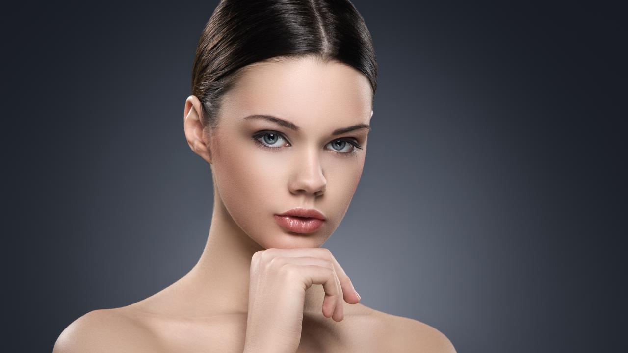 Wallpaper Beautiful blue-eyed girl on a gray background