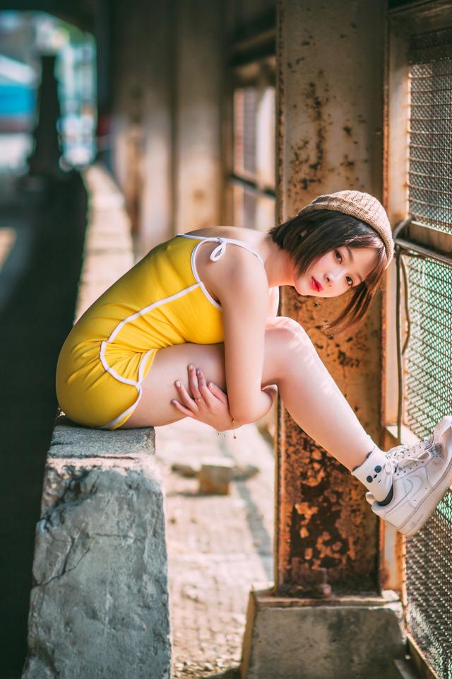 Wallpaper Young Asian girl sitting in a coat on a bench in a park