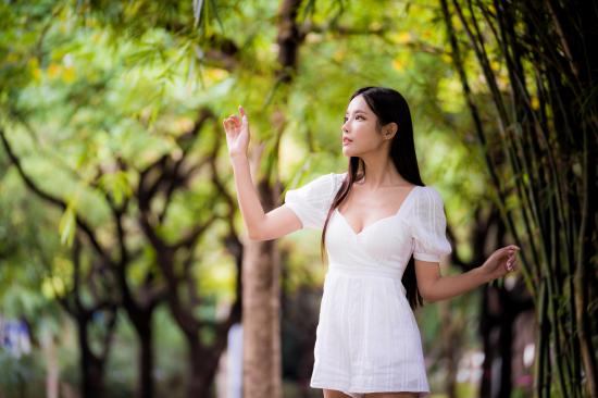 Wallpaper Asian girl in white dress by the tree