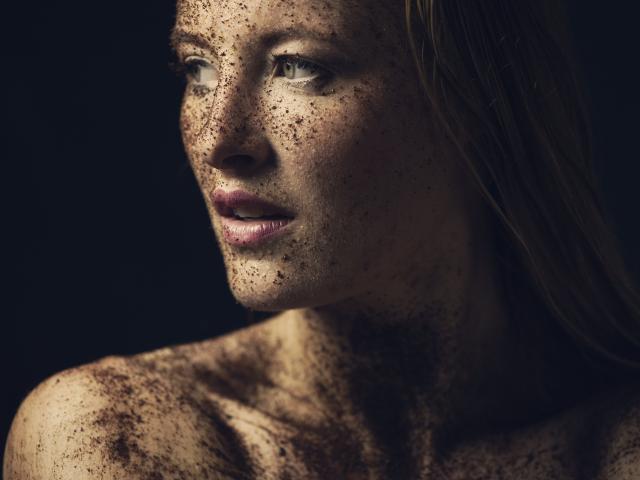 Wallpaper Dirty girl in the ground on black background