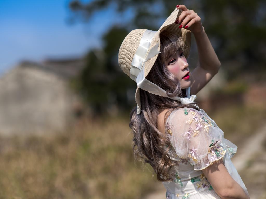 Wallpaper Beautiful asian woman in a hat in the rays of the sun