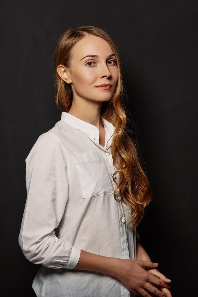 Wallpaper Young girl in a white shirt on a black wall background