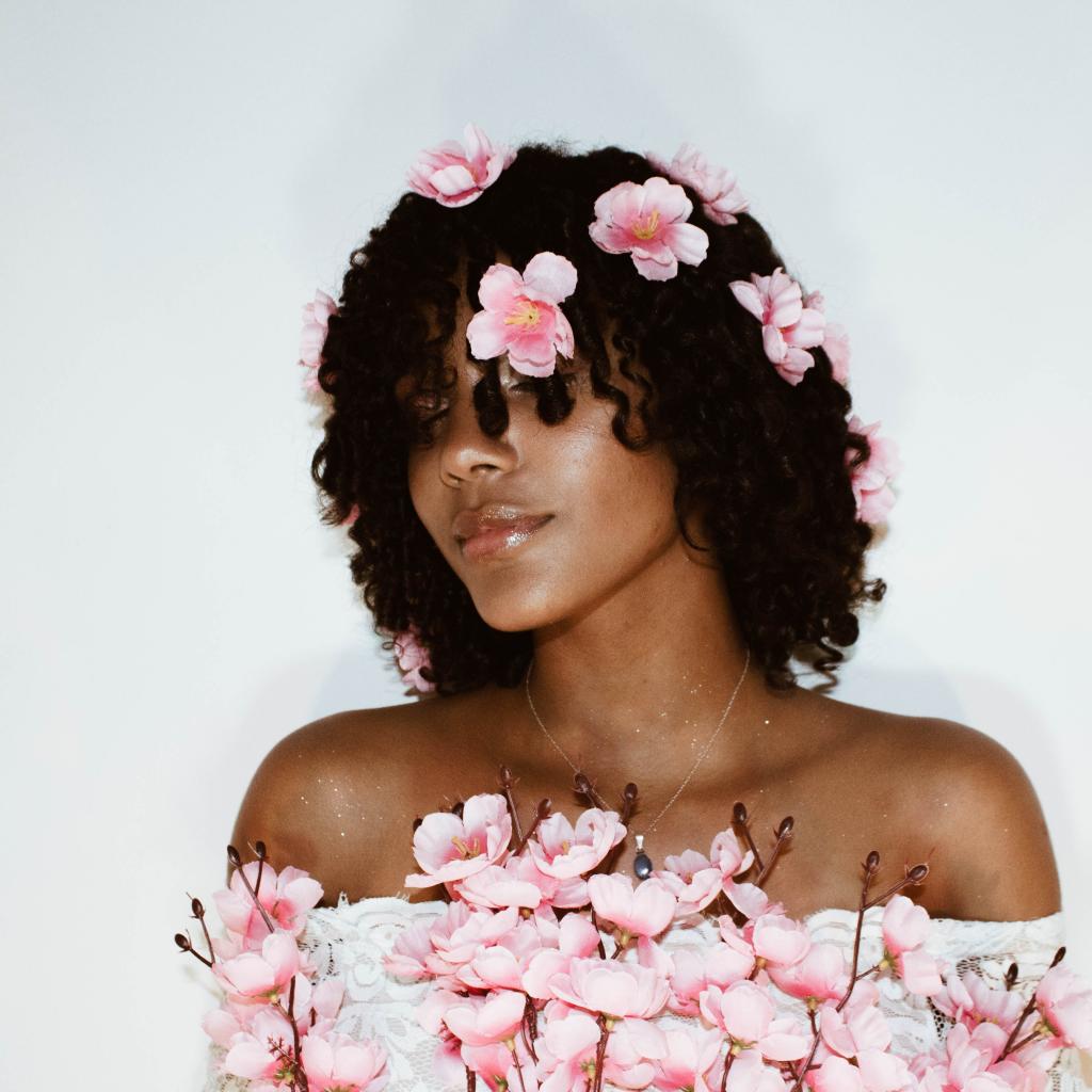 Wallpaper Dark-skinned girl in pink colors on a gray background