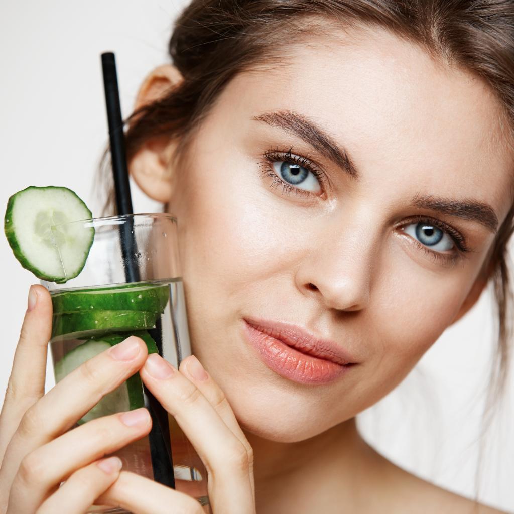 Wallpaper Blue-eyed girl with a cucumber drink in her hand