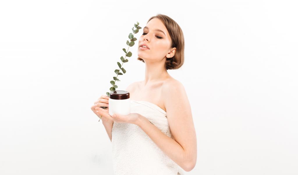 Wallpaper Girl with cream on a white background