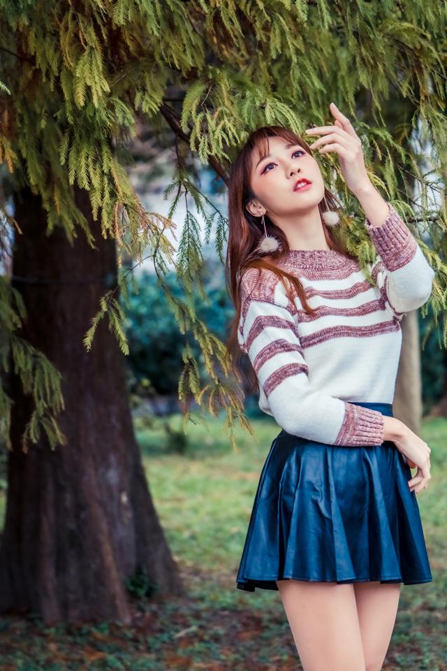 Wallpaper Beautiful Asian girl stands by a tree in the park