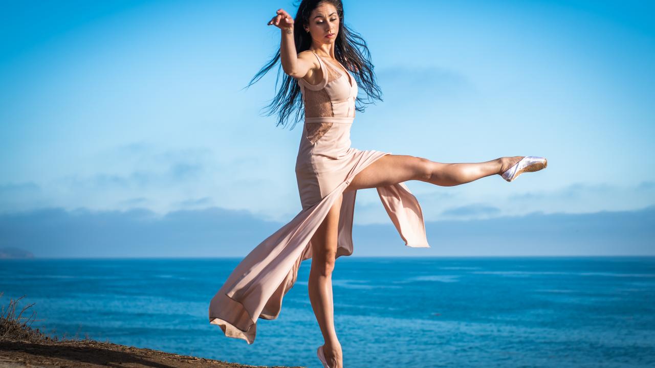 Wallpaper Beautiful girl in dress dancing ballet on the beach
