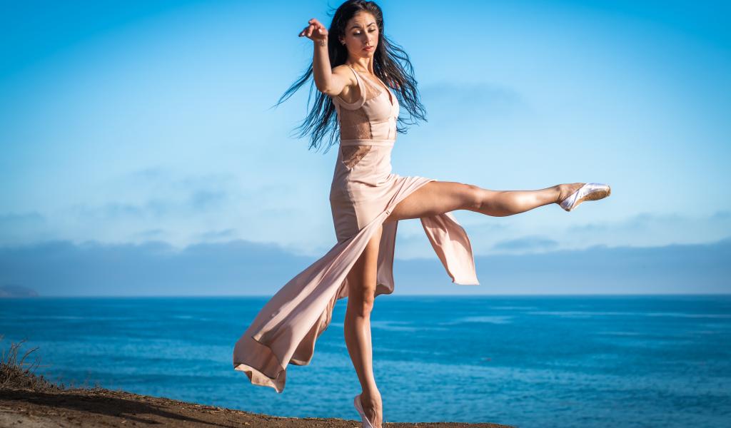 Wallpaper Beautiful girl in dress dancing ballet on the beach