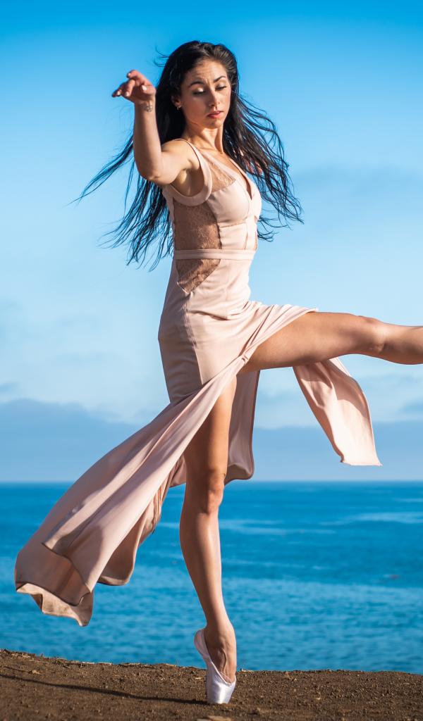 Wallpaper Beautiful girl in dress dancing ballet on the beach