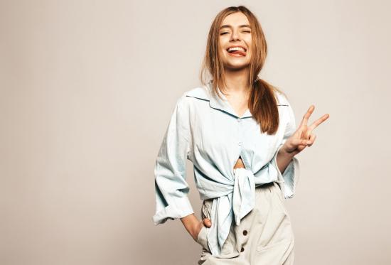 Wallpaper Funny girl in a shirt with sticking out tongue