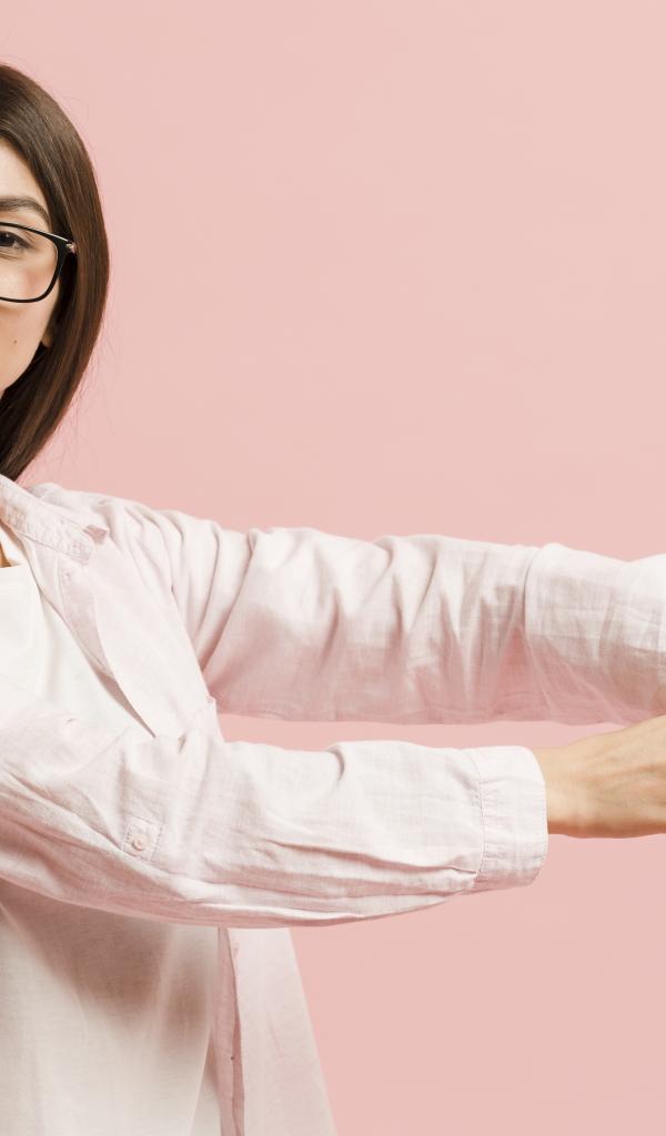 Wallpaper Girl with a watch on her hand on a pink background