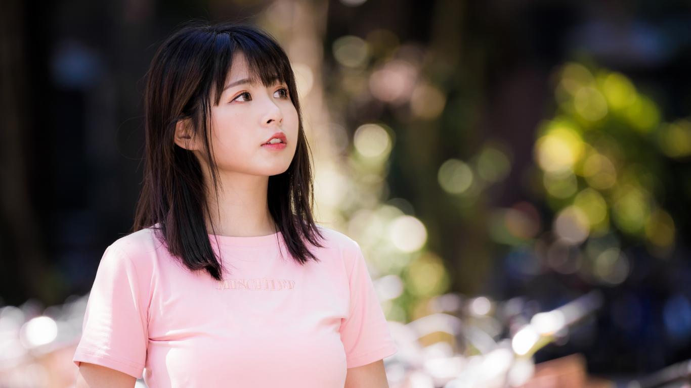 » Wallpaper Real asian girl in pink t-shirt