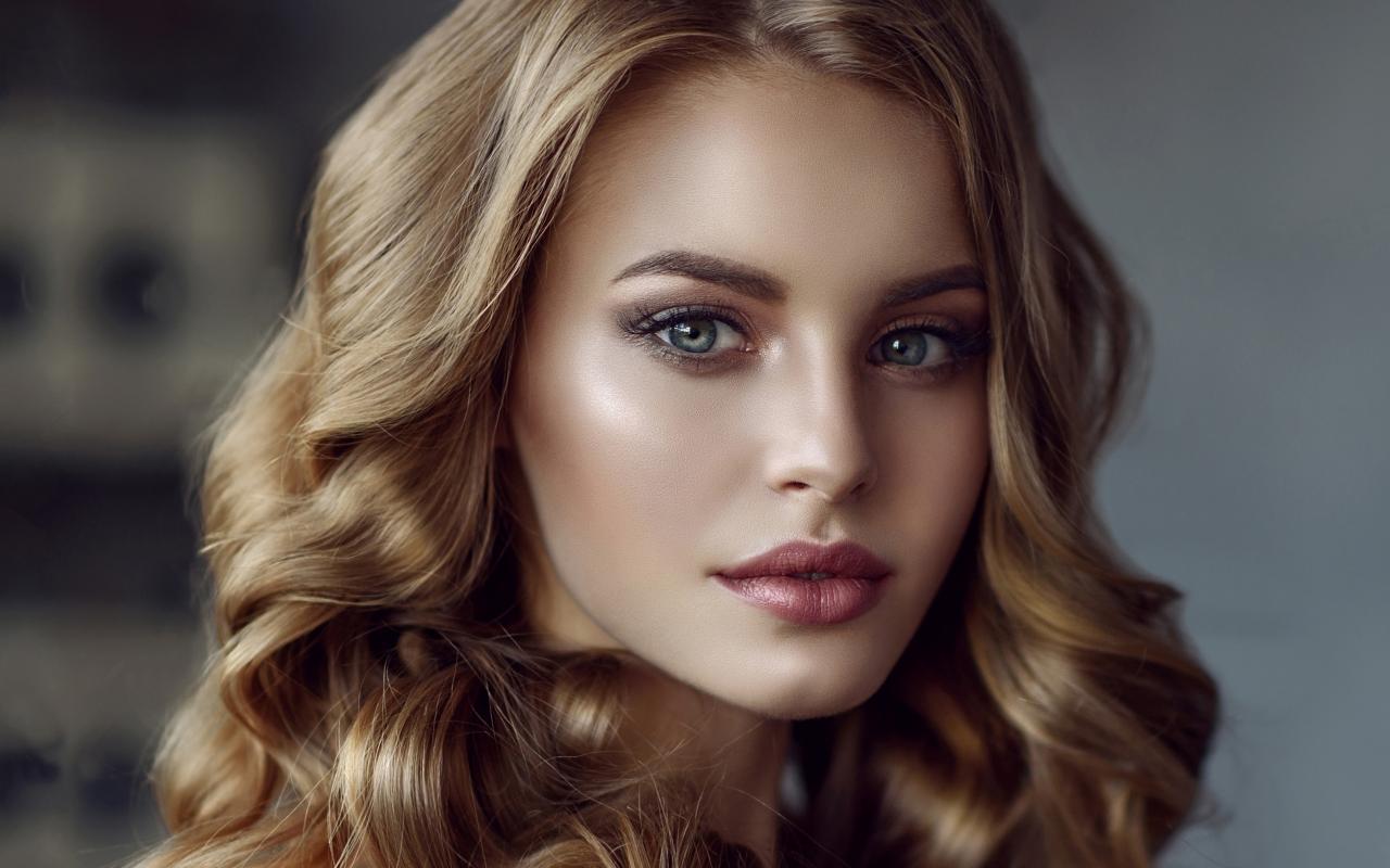 Wallpaper Beautiful blue eyes of a young long-haired girl