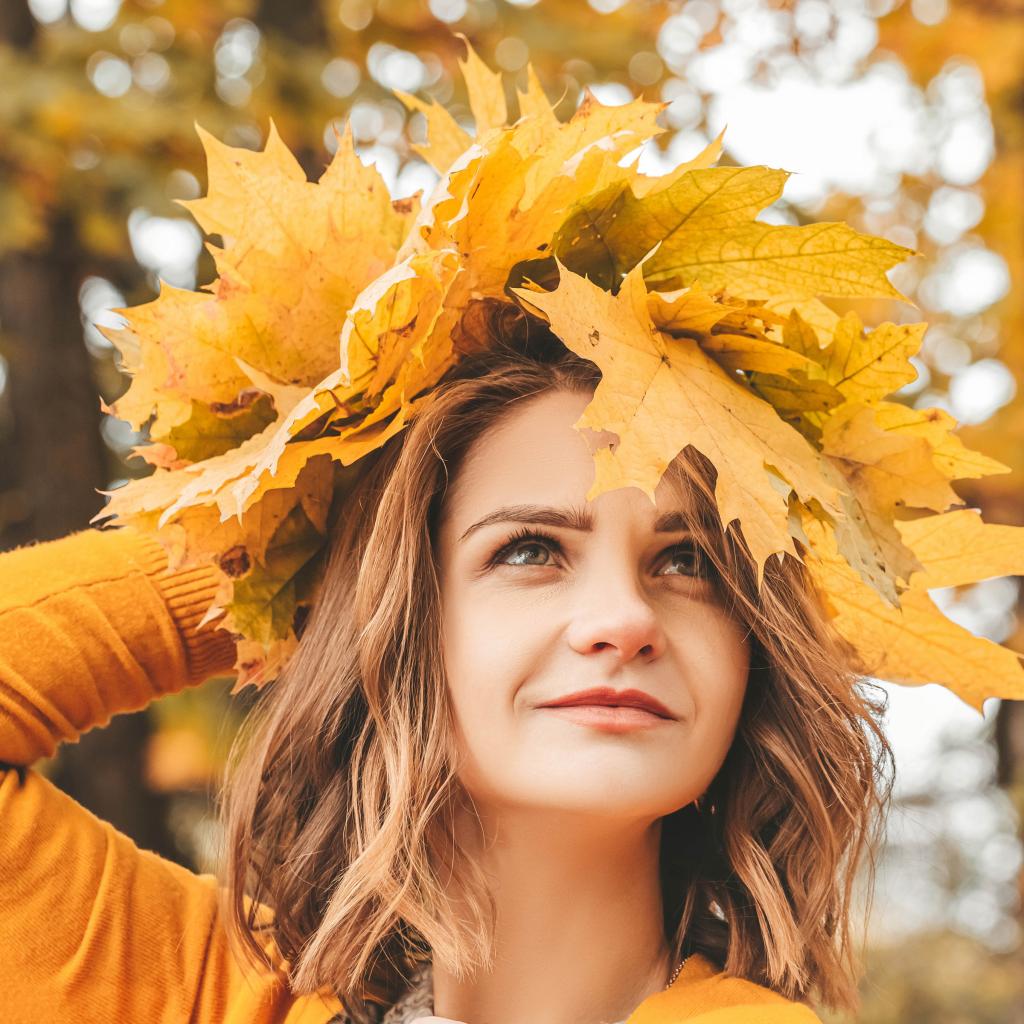 Wallpaper Beautiful girl with a wreath of leaves on her head