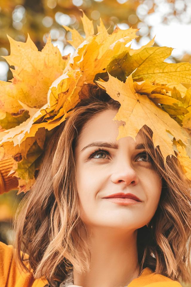 Wallpaper Beautiful girl with a wreath of leaves on her head