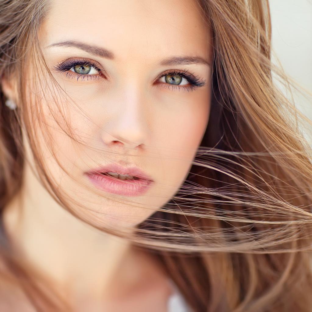 Wallpaper Hair fluttering in the wind on the girl`s face