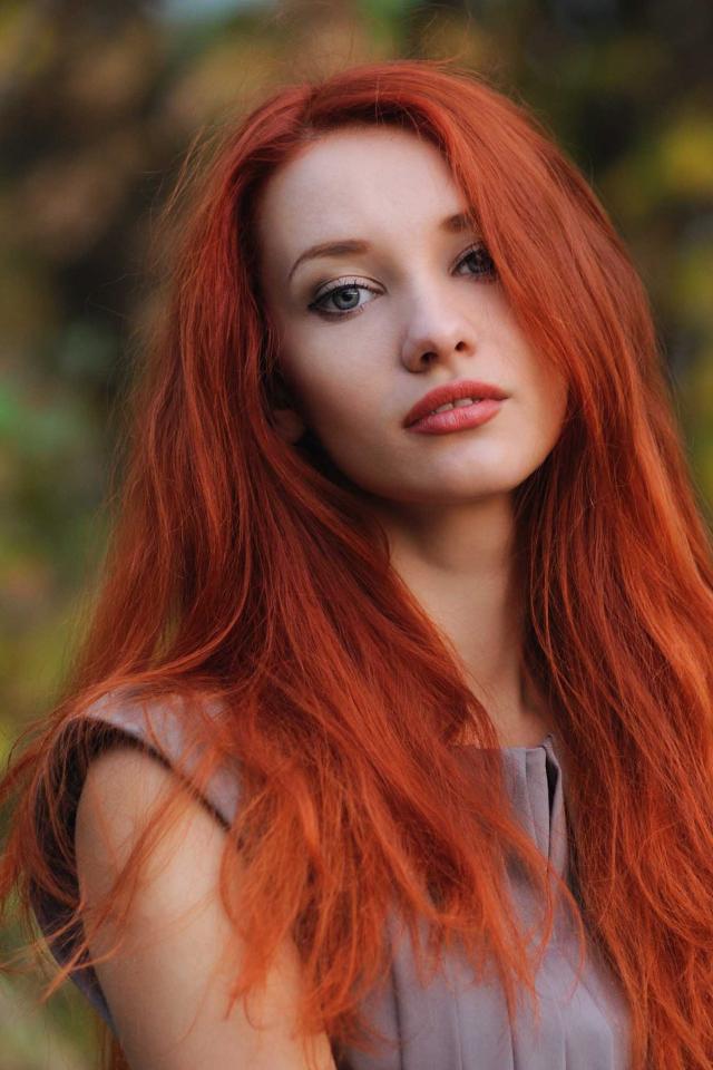 Wallpaper Beautiful red-haired girl with blue hair
