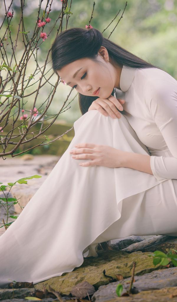 Wallpaper Beautiful sad asian girl in white dress