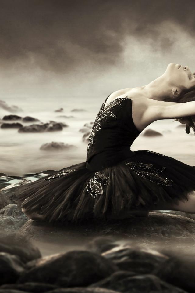 Wallpaper Ballerina in black dress among the waves