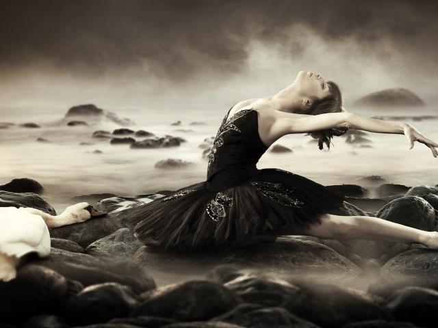Wallpaper Ballerina in black dress among the waves