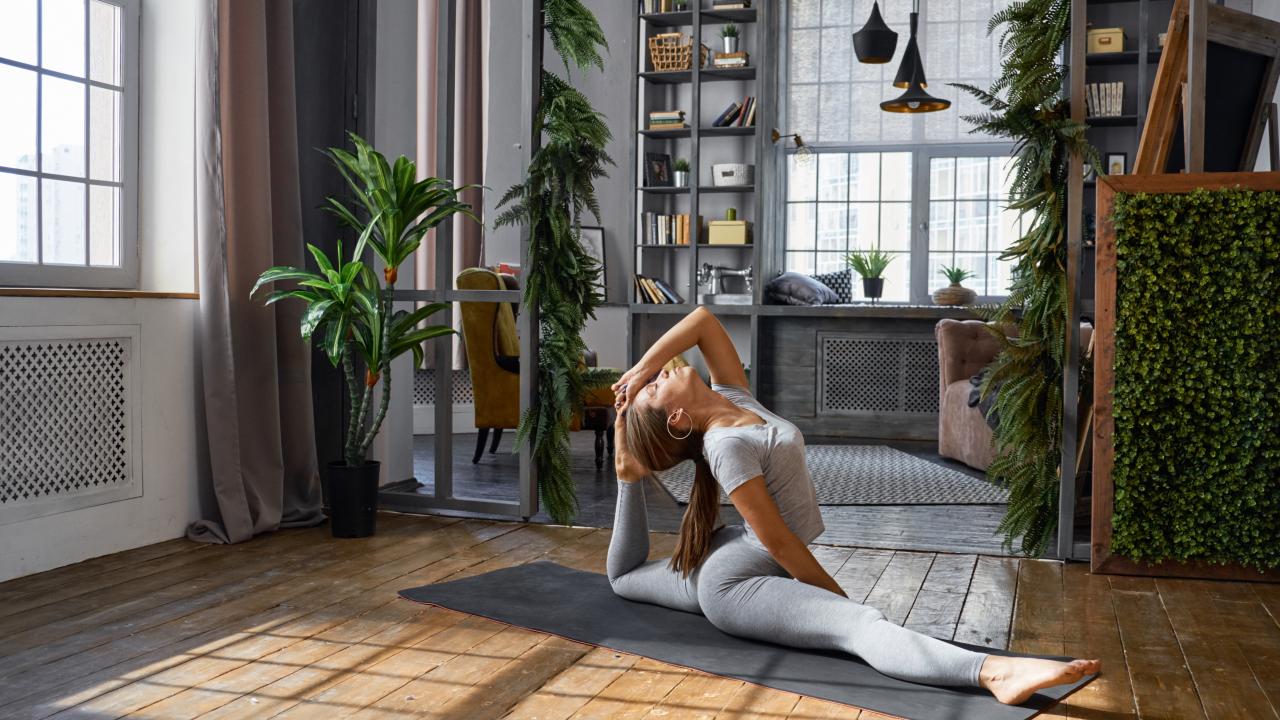Wallpaper Beautiful sports girl with brown hair is engaged in fitness