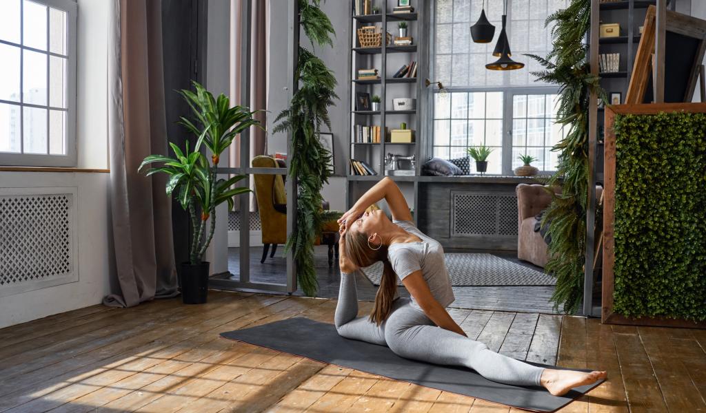 Wallpaper Beautiful sports girl with brown hair is engaged in fitness