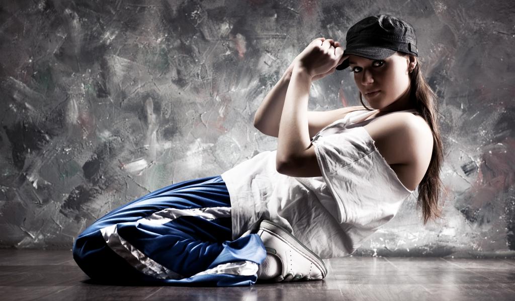 Wallpaper Girl dancer in a baseball cap and sports suit