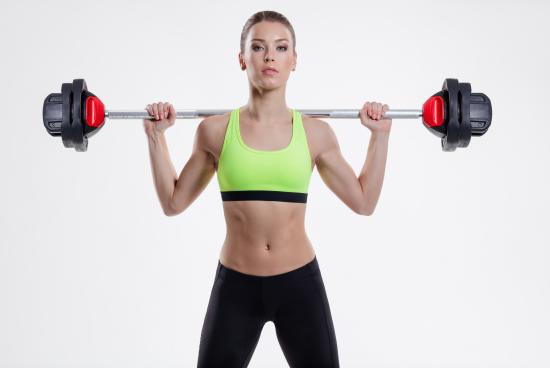 Wallpaper Sports girl with a barbell on her shoulders