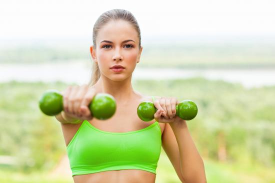 Wallpaper Young athletic blonde with dumbbells in hand