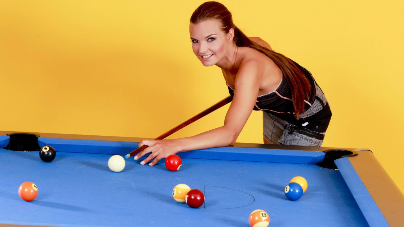» Wallpaper Young girl playing pool