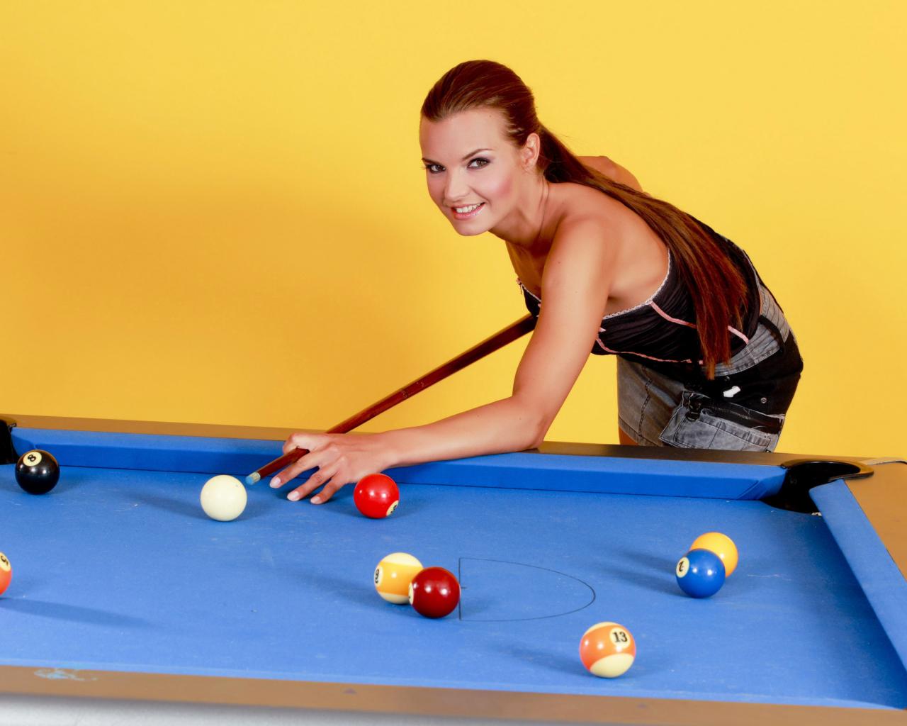 » Wallpaper Young girl playing pool