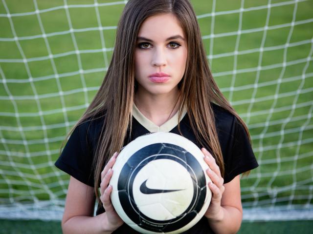 Wallpaper Sports girl goalkeeper with the ball in the goal