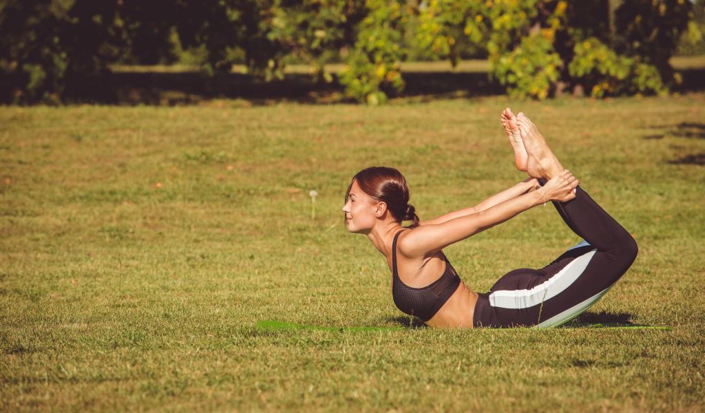 Wallpaper The girl is engaged in gymnastics on the green grass