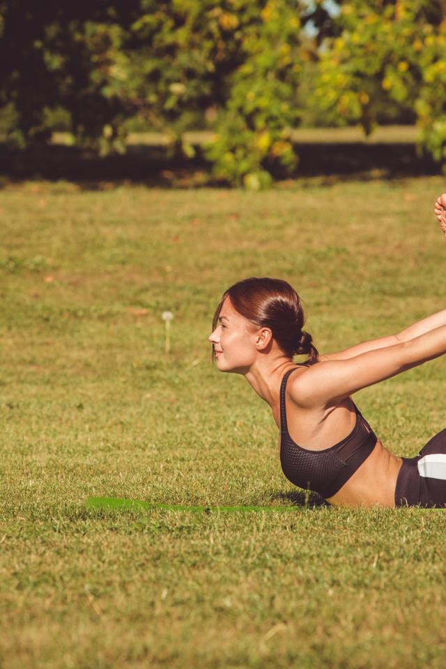 Wallpaper The girl is engaged in gymnastics on the green grass