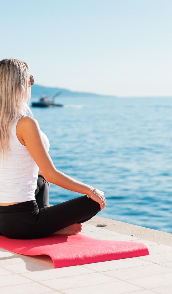 Wallpaper Girl meditates by the sea