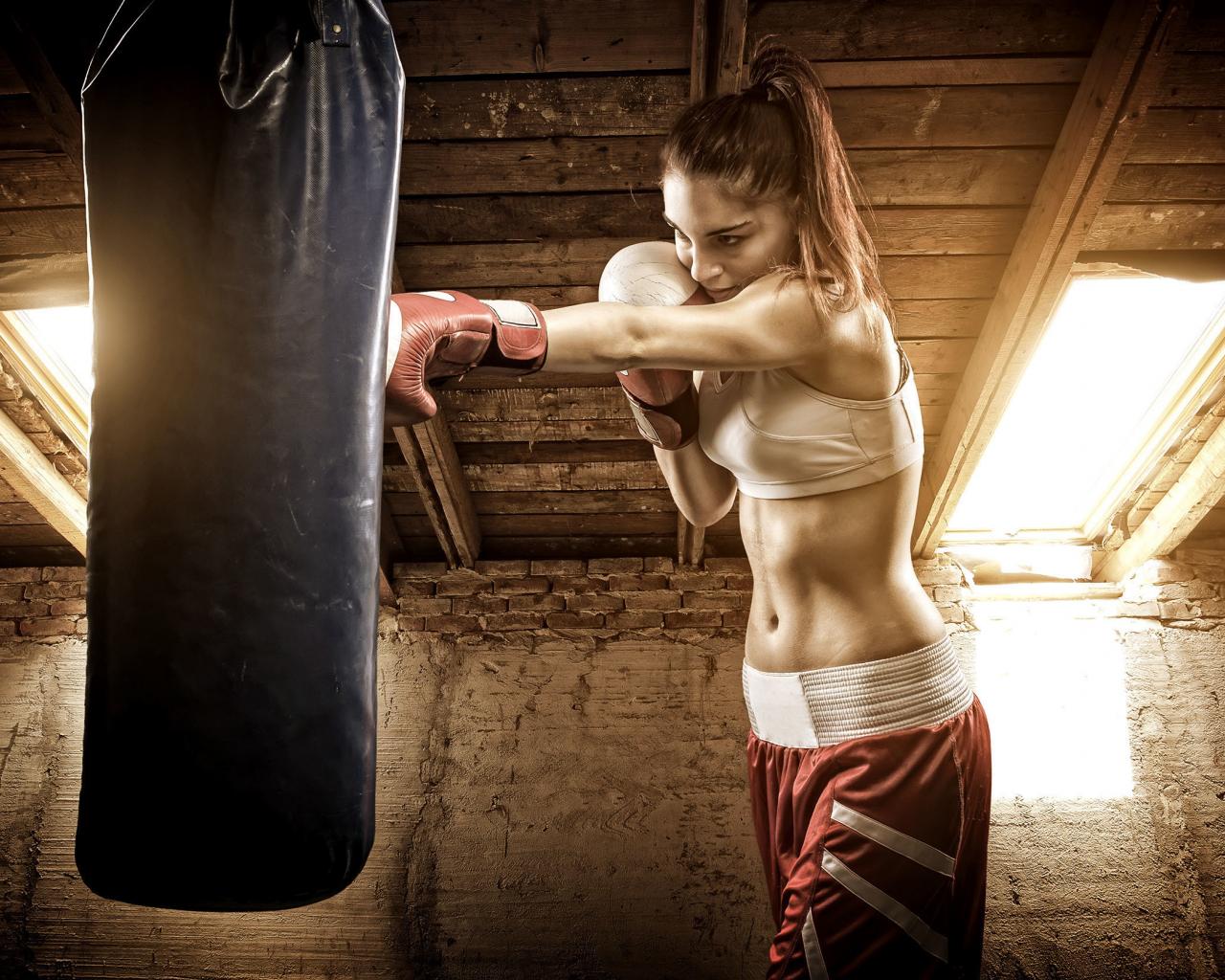 » Wallpaper Sports girl beats a punching bag