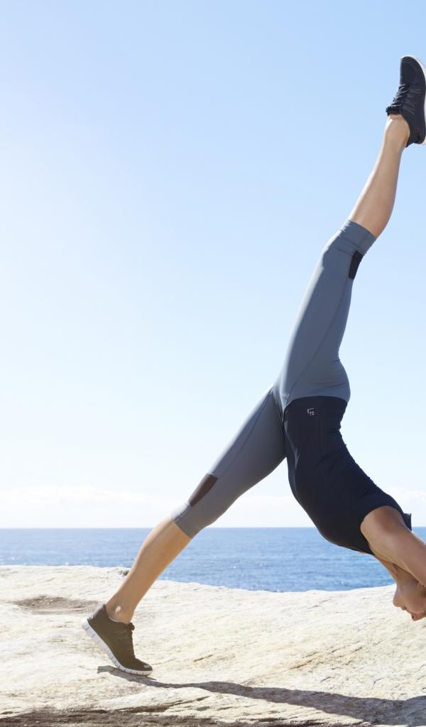 Wallpaper Sports girl does exercises on the seashore