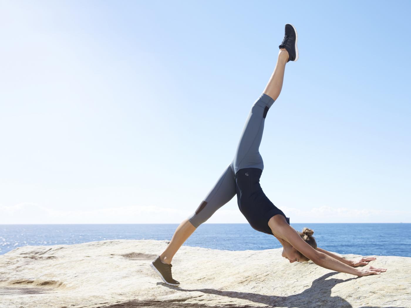 Wallpaper Sports girl does exercises on the seashore