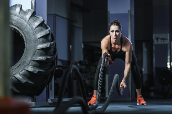 Wallpaper Athletic girl is engaged with ropes in the gym
