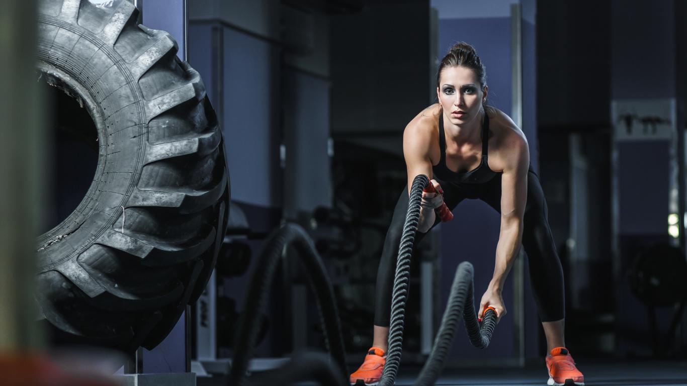 Wallpaper Athletic girl is engaged with ropes in the gym