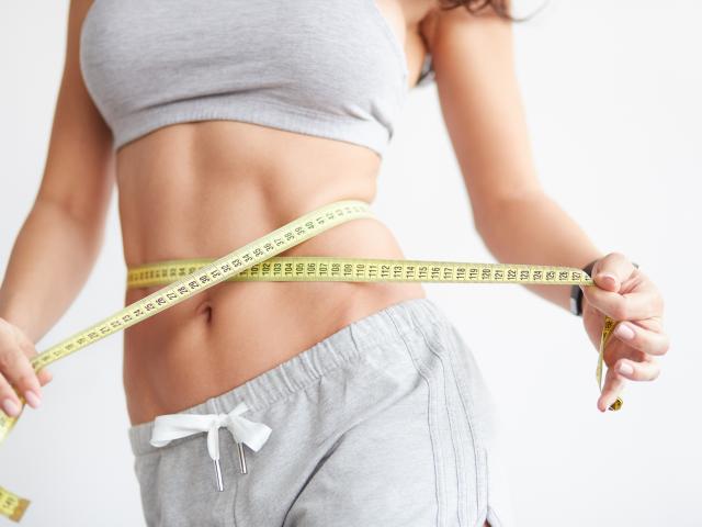 Wallpaper Beautiful slender girl measures her waist with a centimeter