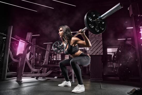 Wallpaper Weightlifter girl lifts the barbell in the gym