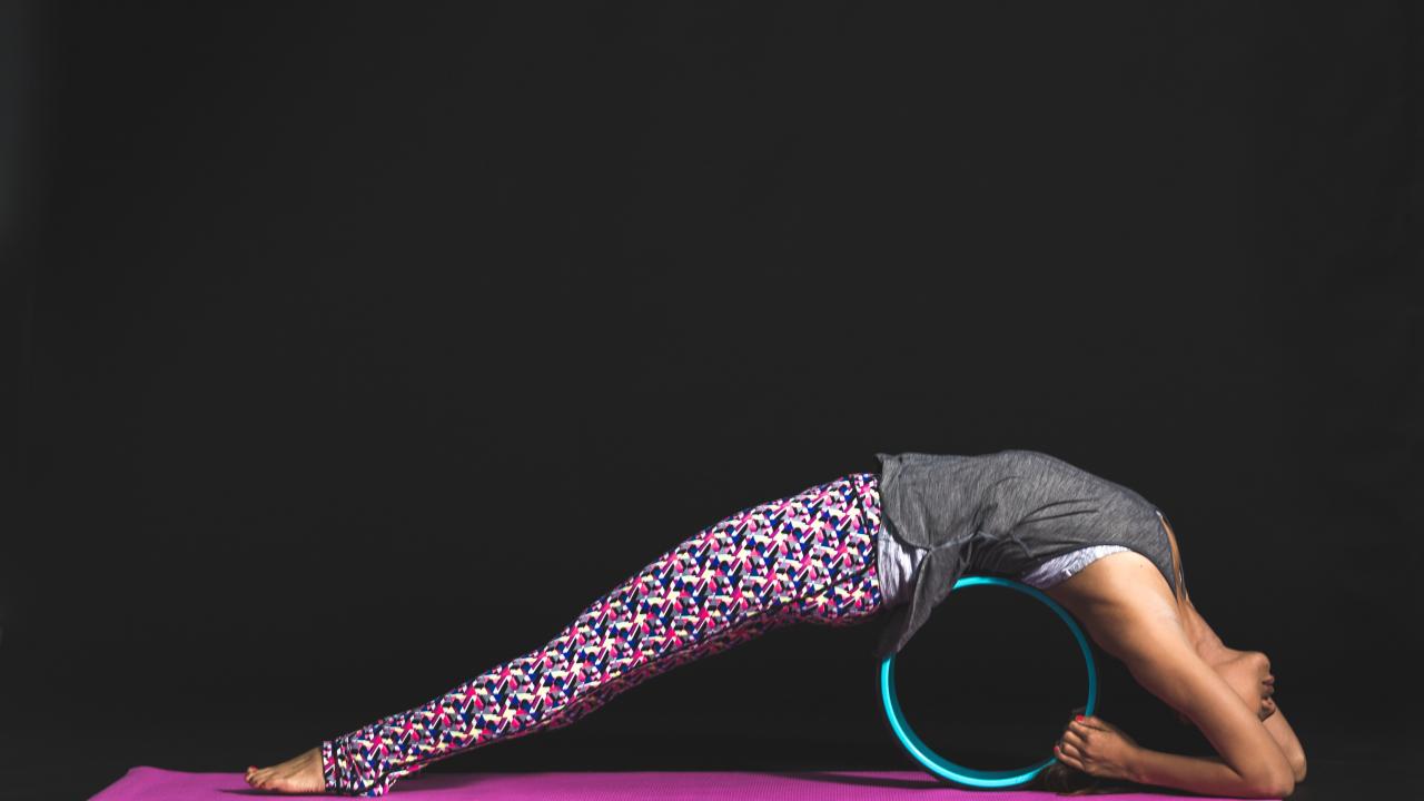 Wallpaper Girl doing exercises for the back on a black background