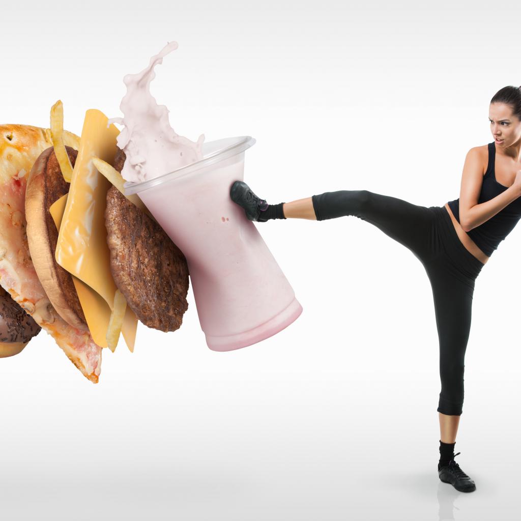 Wallpaper Sports girl against junk food