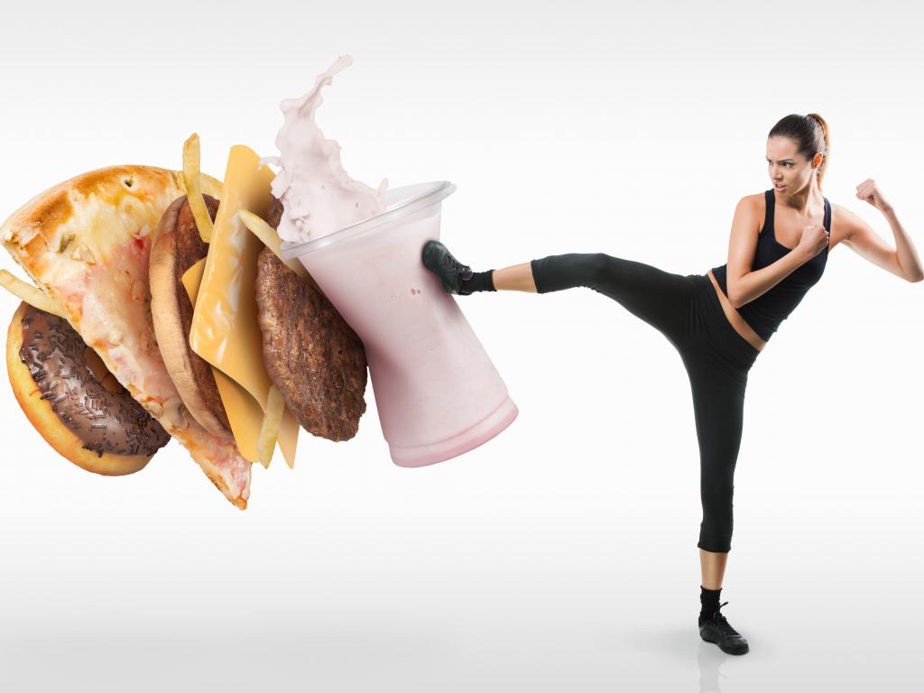 Wallpaper Sports girl against junk food