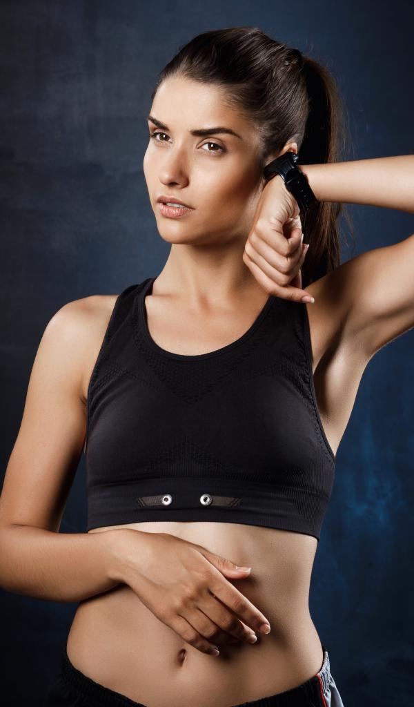 Wallpaper Sports girl in a black suit with a watch on her hand