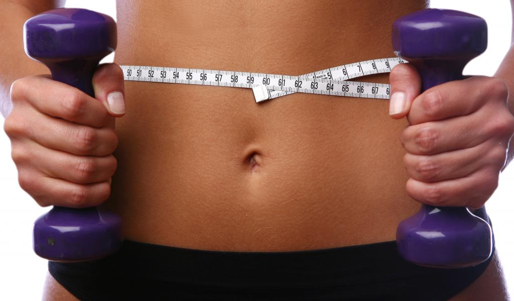 Wallpaper Slim athletic girl with dumbbells in her hands