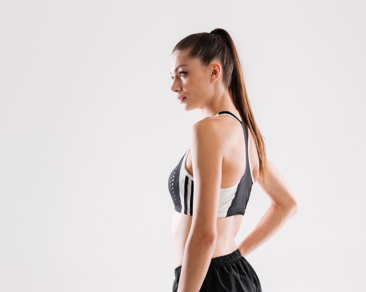 Wallpaper Beautiful girl with hair gathered in a ponytail