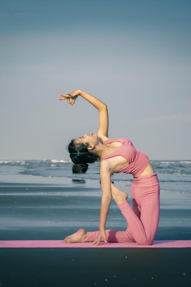Wallpaper Girl doing yoga by the sea