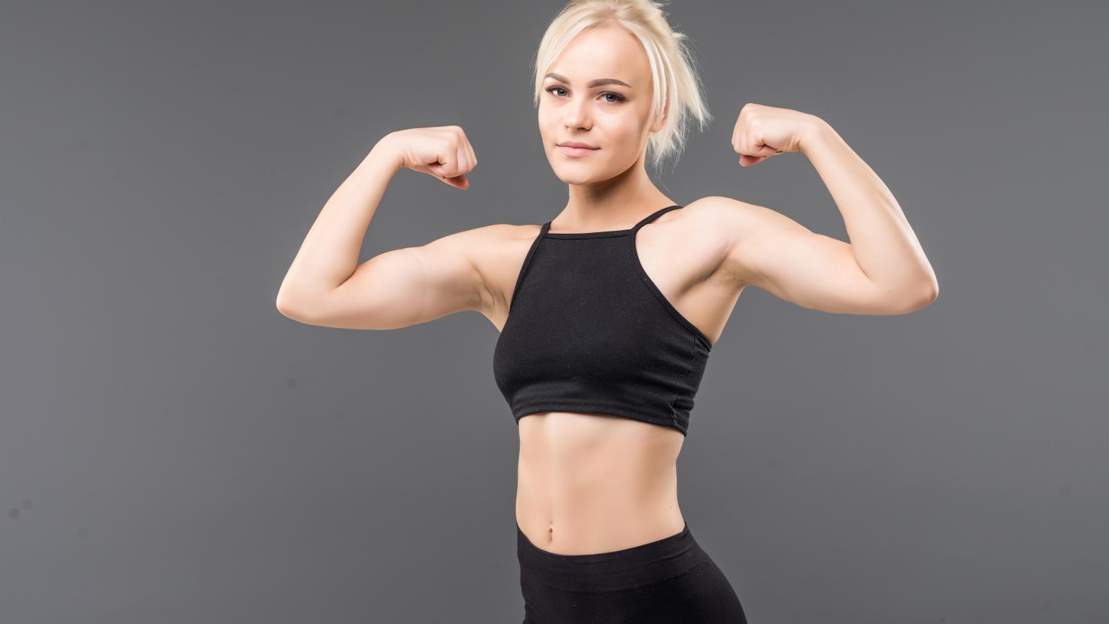 Wallpaper Beautiful slender athletic girl shows muscles